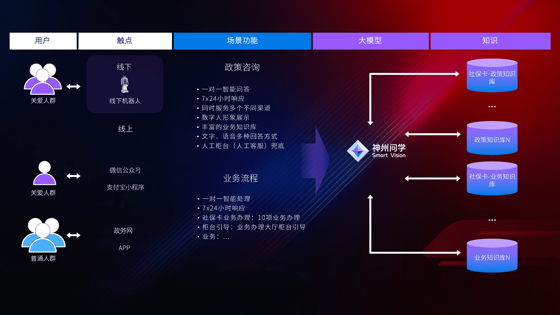 在服务大厅部署客服机器人,,在线上应用和小程序配置客服数字人,,724小时为群众解答常规问题,,,,客服机器人无法处理的,,,转现场人工处理。。
